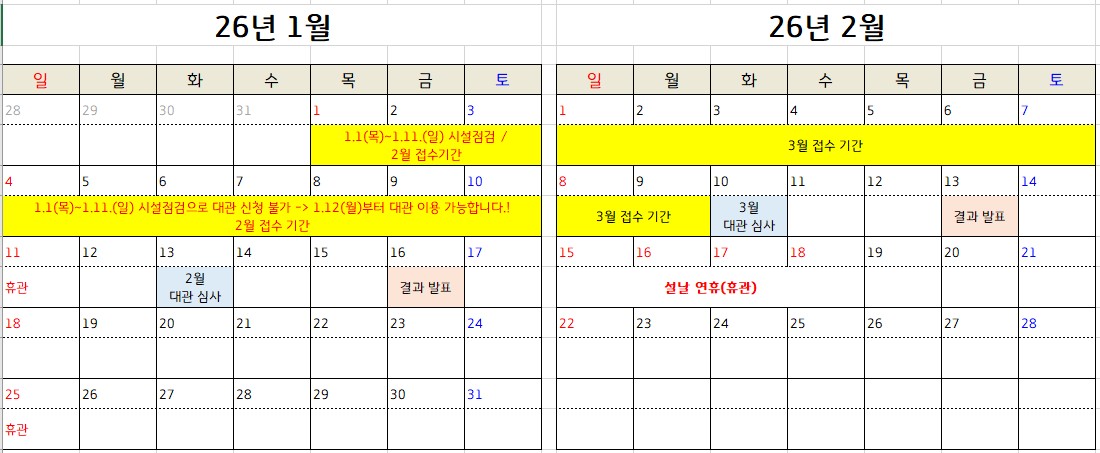 - 2) 수련관 프로그램 및 행사 진행 시 일정 변경 가능성 있음