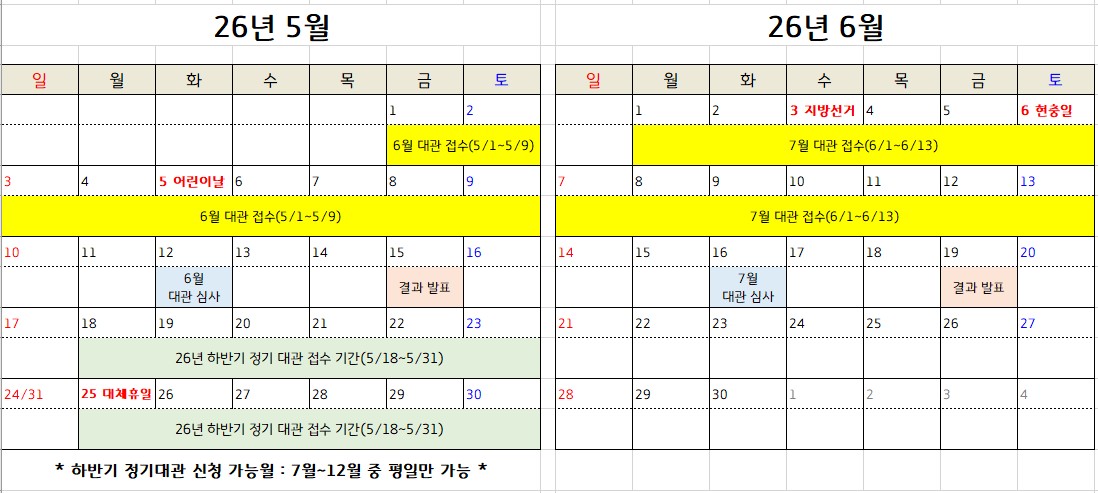 - 주의사항 : 선착순 접수이며, 접수 기간 외 신청 시 자동 반려됩니다.
