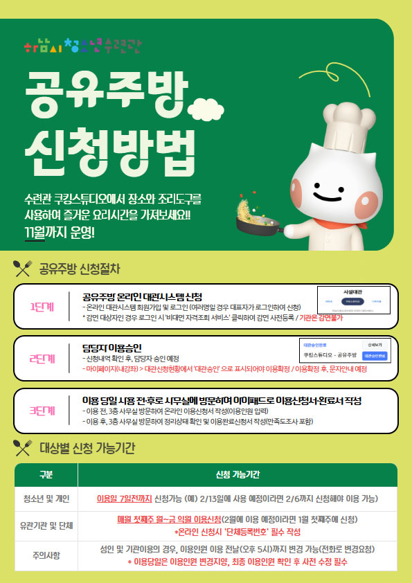 - 신청 시간 작성 시 준비 및 정리 시간을 반드시 포함해 주세요.