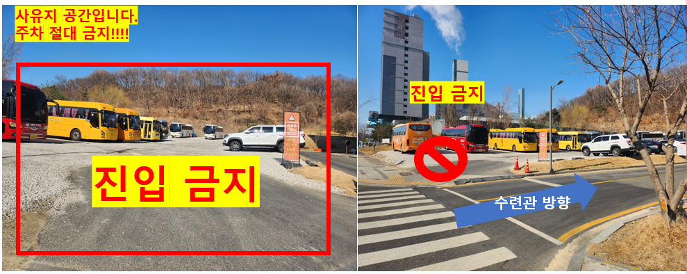 - 참고사항 : 200명 이상 행사 시 주차 안내 인원을 직접 배치해야 하며, 갓길 주차 단속 시 수련관은 책임지지 않습니다. / 사유지 주차 절대 금지