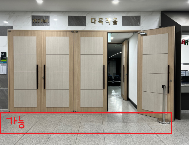 - 3) 안내문 및 기타 세팅 장소 : 1층 정문 출입 유리문, 지하 1층 출입 유리문(수련관 안내사항 가리지 않도록 부착 가능)
