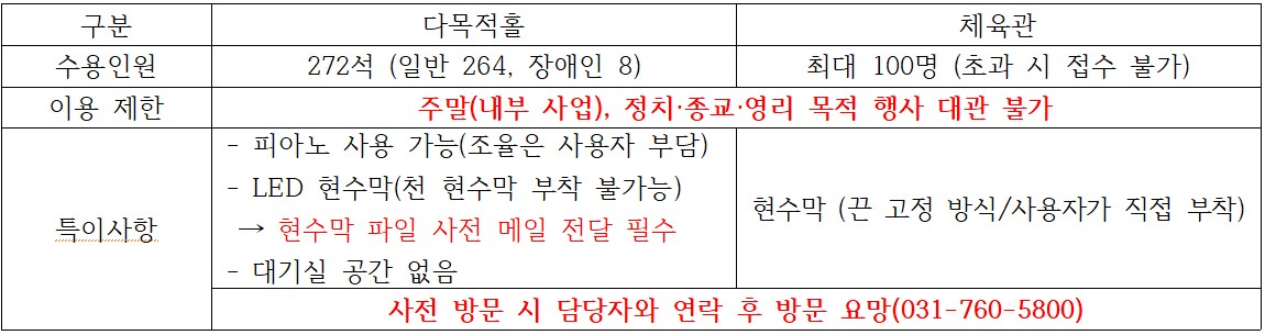 대관 일정 문의 : 031-760-5832