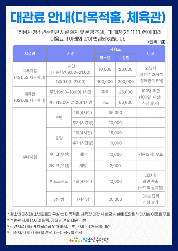 - 4) 부대시설 신청 내용 외 수련관 물품 사용 불가